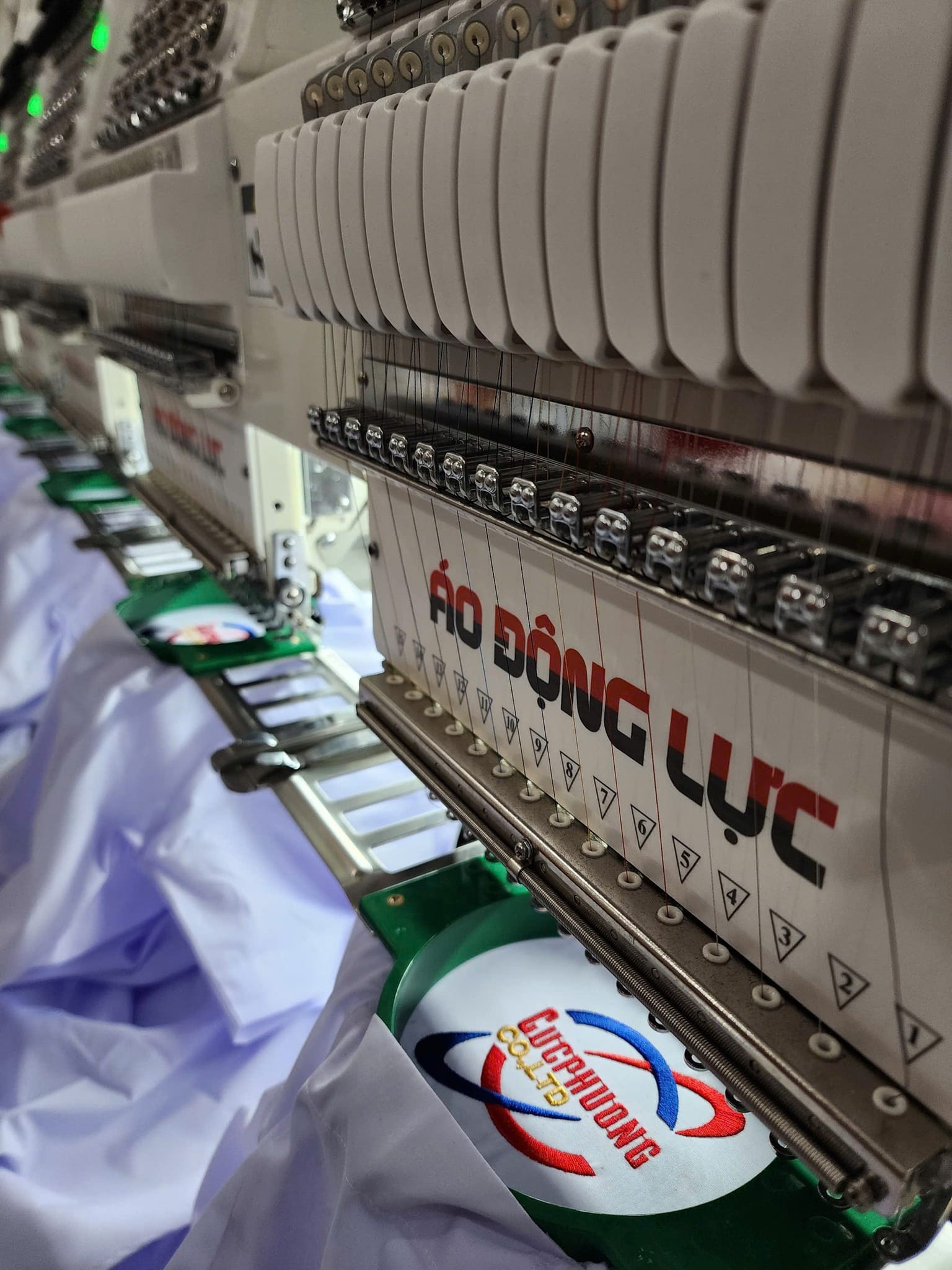 Thực hiện thêu trên hệ thống máy hiện đại, kiểm tra từng sản phẩm theo tiêu chuẩn 1cm = 5 mũi chỉ. - Giao hàng nhanh chóng