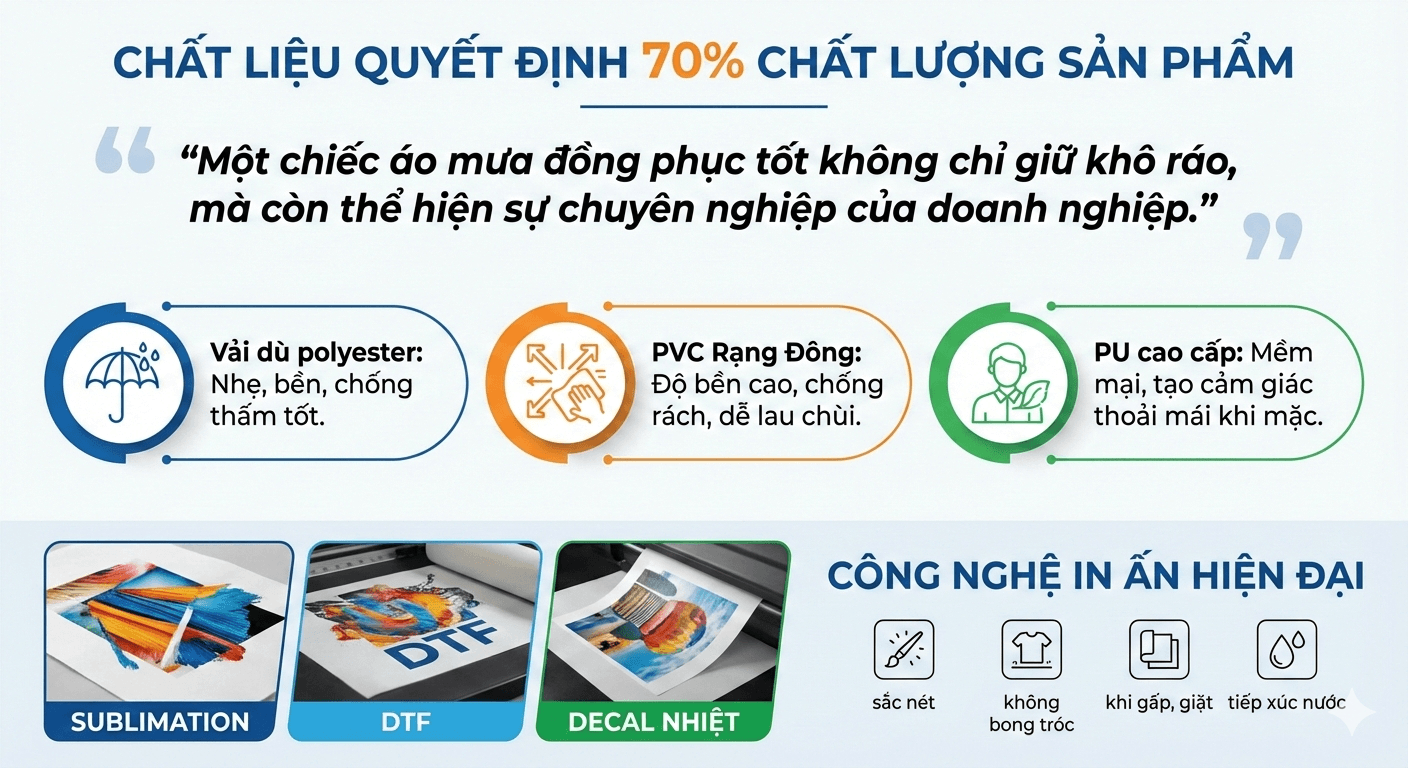 “Một chiếc áo mưa đồng phục tốt không chỉ giữ khô ráo, mà còn thể hiện sự chuyên nghiệp của doanh nghiệp.”