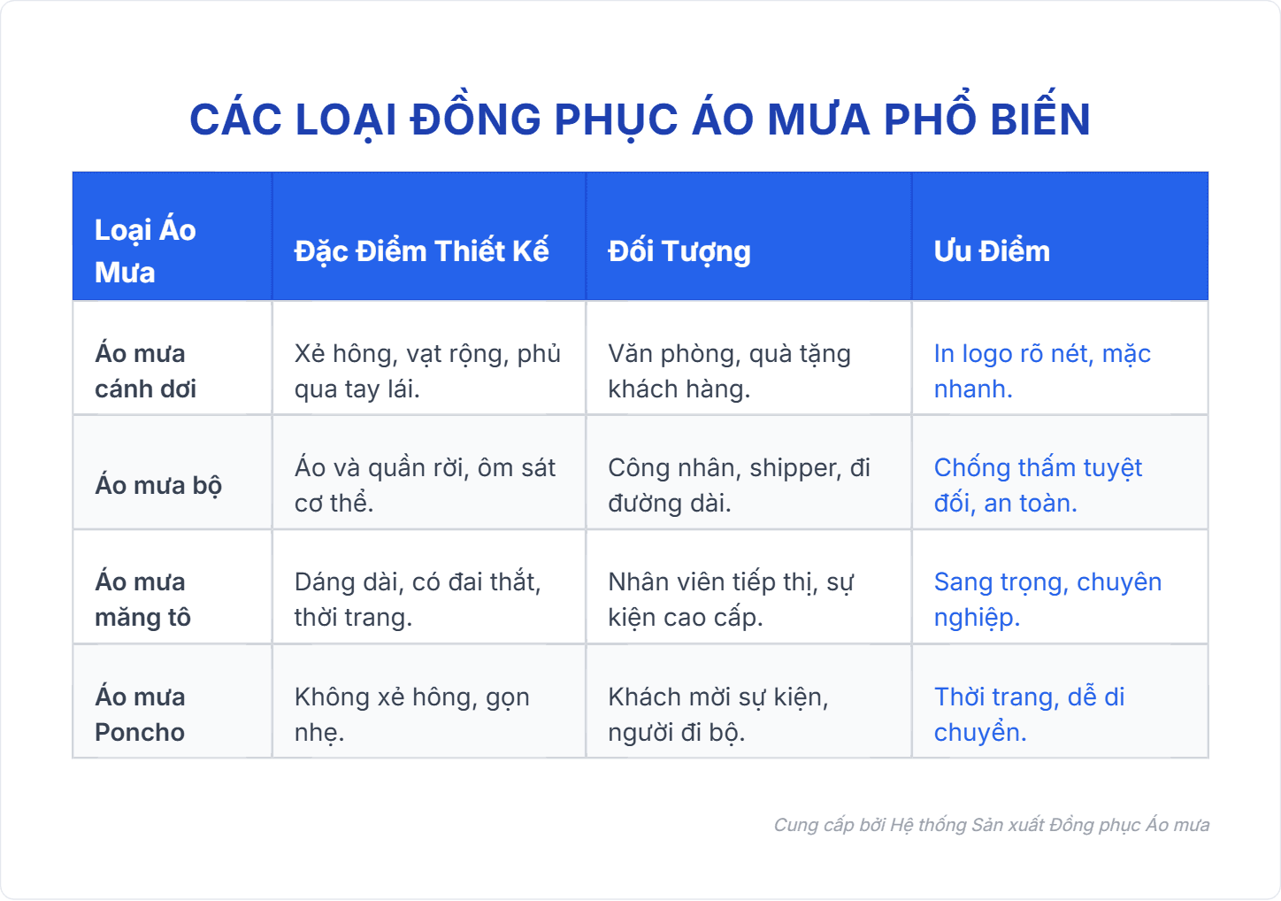 Các loại đồng phục áo mưa phổ biến